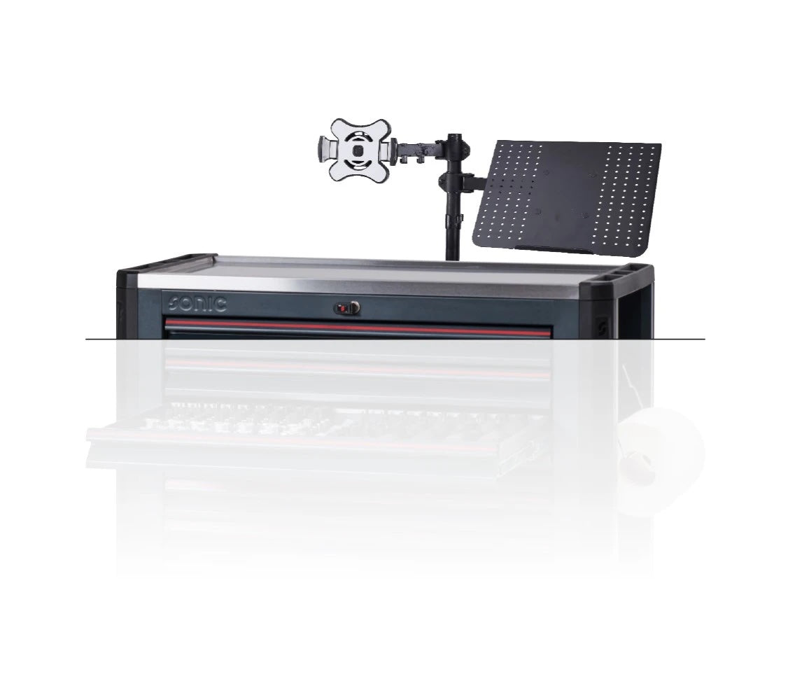 Tablethouder met flexibl klemmechanisme geschikt voor gereedschapswagenmodellen S9, S12, S12XD, S13, S14, en S15 vanaf het jaar 2023.