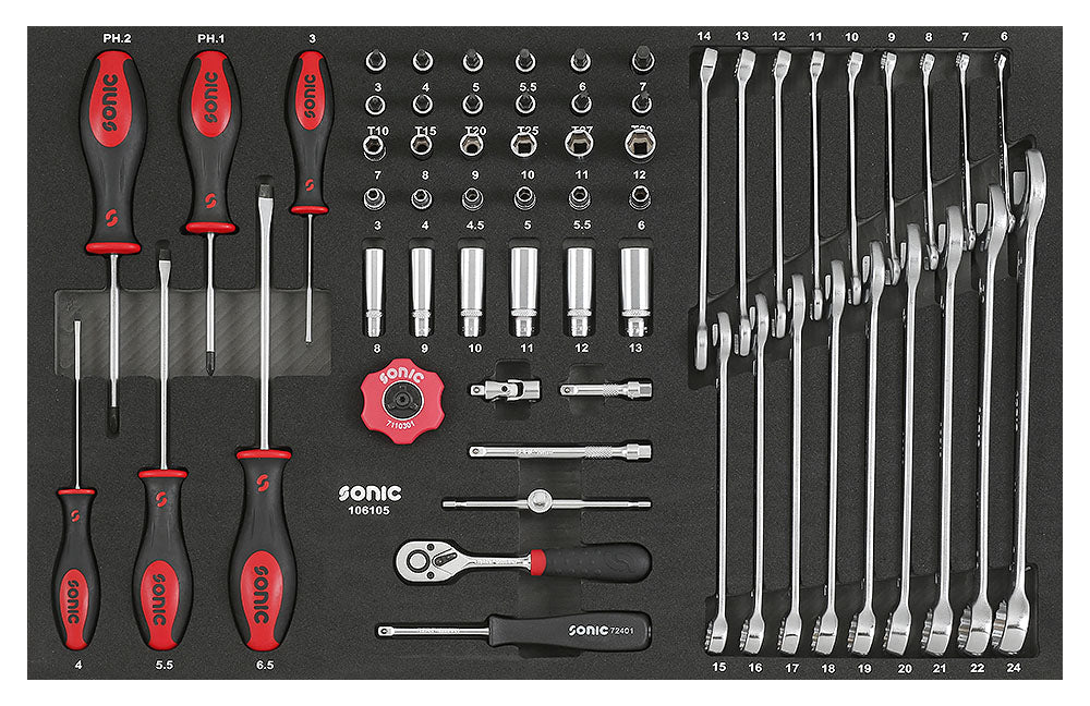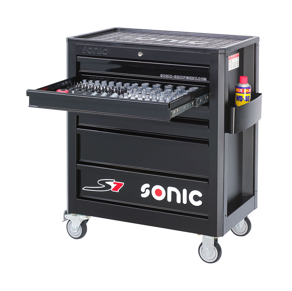 De S7 gereedschapswagen van Sonic biedt een uitstekende basis voor professionals in diverse vakgebieden. Deze wagen, voorzien van 6 laden (4 standaard en 2 diepe laden), kenmerkt zich door een eenvoudig maar uiterst stevig ontwerp. Bovendien wordt de Sonic S7 gereedschapswagen geleverd inclusief een gereedschapsset van 140 stuks die drie van de laden vult.