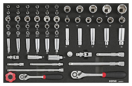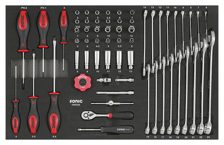 - De Sonic S7 gereedschapswagen is voorzien van een elektrostatische poedercoating, beschikbaar in RAL 9004 zwart en geschikt voor de small en medium Sonic Foam System (SFS) foam inlays.