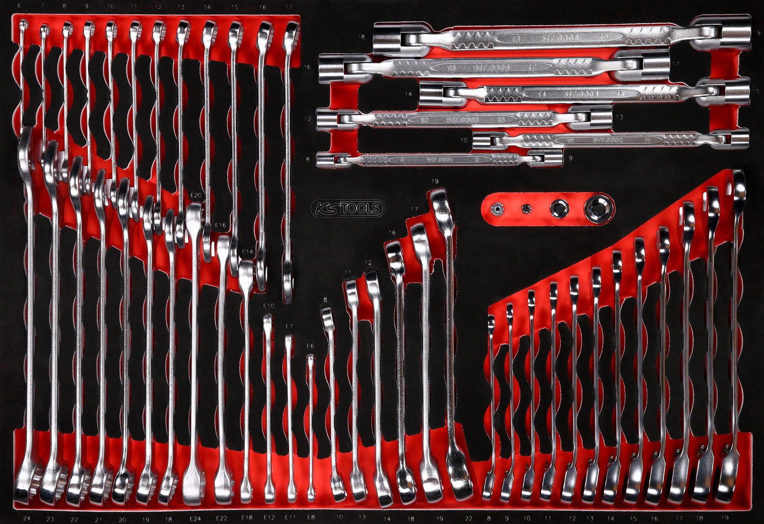 Met de PERFORMANCE PLUS gereedschapswagens streeft KS Tools ernaar om de beste gereedschapswagens te leveren voor monteurs in de industrie, motorvoertuigen en bedrijfsvoertuigen, evenals voor alle individualisten die de hoogste eisen stellen. Ze overtreffen hun beloften door gereedschapswagens aan te bieden met 4, 5, 6, 7 of 8 laden, inclusief het benodigde gereedschap.
