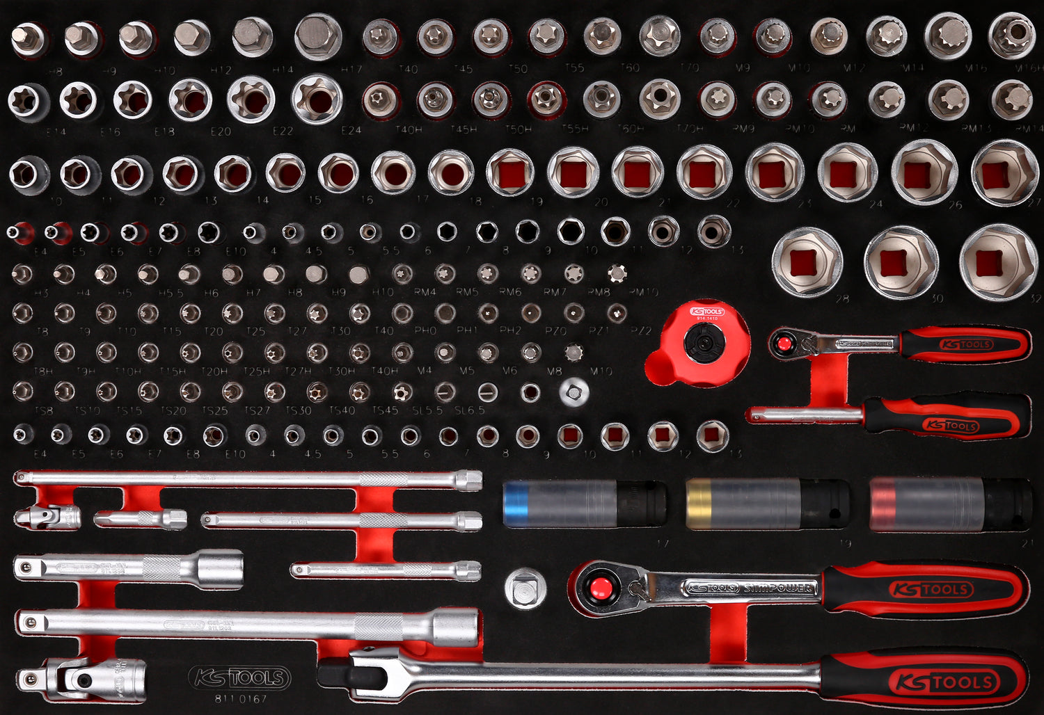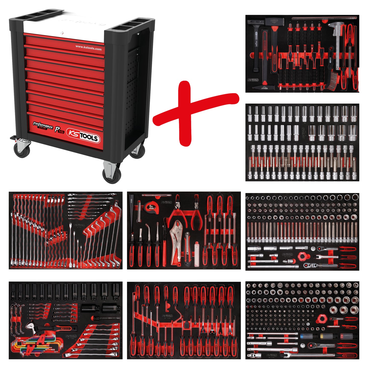 Met de PERFORMANCE PLUS gereedschapswagens streeft KS Tools ernaar om de beste gereedschapswagens te leveren voor monteurs in de industrie, motorvoertuigen en bedrijfsvoertuigen, evenals voor alle individualisten die de hoogste eisen stellen. Ze overtreffen hun beloften door gereedschapswagens aan te bieden met 4, 5, 6, 7 of 8 laden, inclusief het benodigde gereedschap.