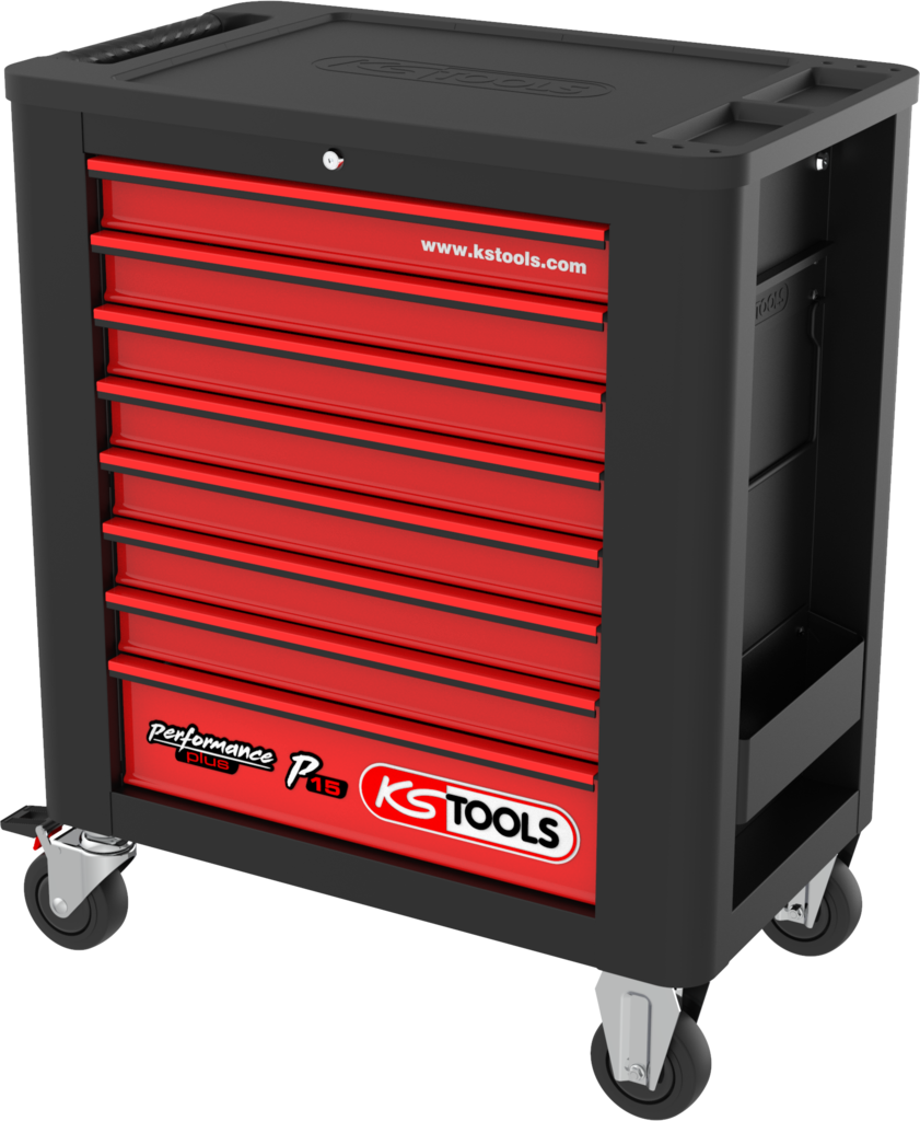 Met de PERFORMANCE PLUS gereedschapswagens streeft KS Tools ernaar om de beste gereedschapswagens te leveren voor monteurs in de industrie, motorvoertuigen en bedrijfsvoertuigen, evenals voor alle individualisten die de hoogste eisen stellen. Ze overtreffen hun beloften door gereedschapswagens aan te bieden met 4, 5, 6, 7 of 8 laden, inclusief het benodigde gereedschap.