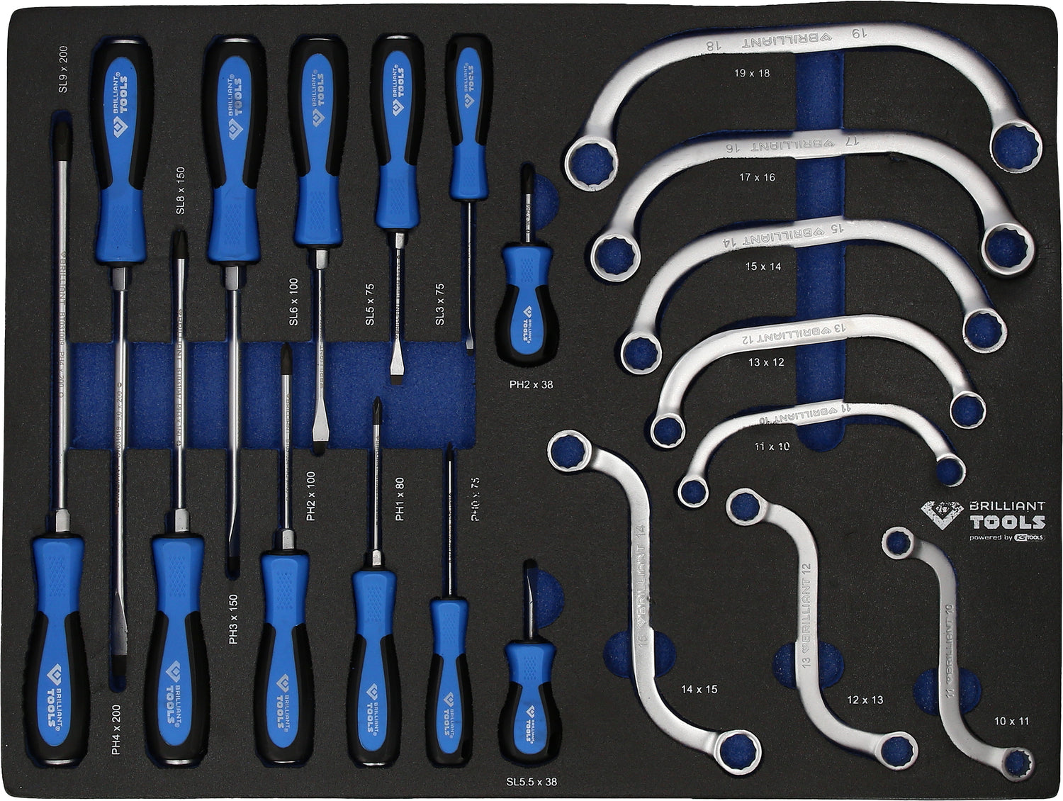 Schroevendraaiers en dubbele ringsleutels, 20-dlg
