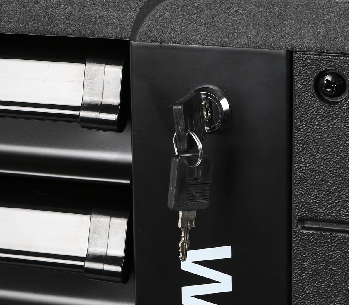 - Optimaal georganiseerde schuifladen met schuimstofinleg, zodat elk gereedschap z’n plek heeft